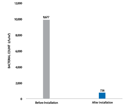 某知名房地產(chǎn)集團(tuán)旗下一處房產(chǎn)的隔油池存在非常嚴(yán)重的氣味問題。 然后將百屋純 ?設(shè)備安裝在隔油池上。 測試結(jié)果顯示:細(xì)菌含量大幅度下降,臭味也明顯減少。。 該測試報(bào)告由Guangdong Testing Institute of Product Quality Supervision所提供