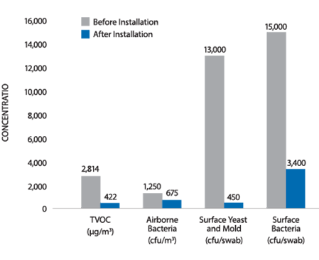 香港一家著名的精神病醫(yī)院的病房里散發(fā)出令人不愉快的氣味和大量細菌。 安裝百屋純?設(shè)備后,氣味水平和細菌水平均大大降低。該測試報告由LAWN Environmental Protection Ltd所提供