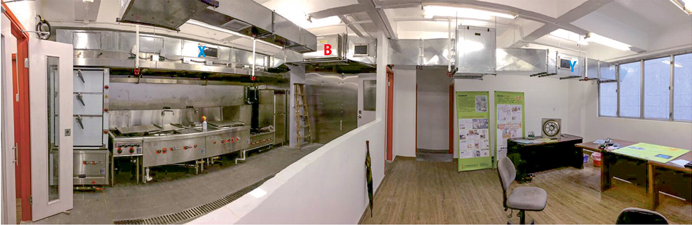 BioZone? OGR?油煙異味凈化系統(tǒng)安裝在照片中的B位置,采樣點的入口和出口分別位于照片中的X和Y 。