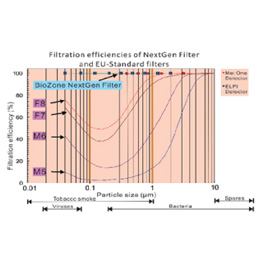 BioZone ? NextGen?純凈化超高效過(guò)濾系統(tǒng)安裝在芬蘭赫爾辛基一家以過(guò)敏和哮喘為重點(diǎn)的機(jī)構(gòu)的新鮮空氣系統(tǒng)中。測(cè)試結(jié)果表明,安裝BioZone?裝置后,大于0.3μm的顆粒物原始濃度降低了96.2%,而大于0.5μm的顆粒物降低了96.5%。