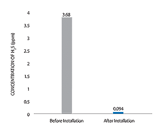 香港某污水處理廠散發(fā)的異味非常嚴重,其中主要的空氣污染物是硫化氫。安裝百屋純?MLP系列凈化設(shè)備后,硫化氫的去除率高達97.4%。