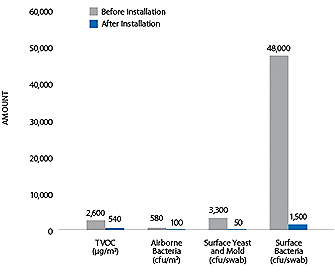 快餐店的洗手間散發(fā)出強(qiáng)烈的難聞氣味,給顧客留下了不好的印象。 因此安裝了百屋純?AC通用系列產(chǎn)品,從而大大提升了洗手間內(nèi)的空氣質(zhì)量,大大降低了難聞的氣味和細(xì)菌的數(shù)量,特別是物表細(xì)菌,殺滅率高達(dá)了97%以上。